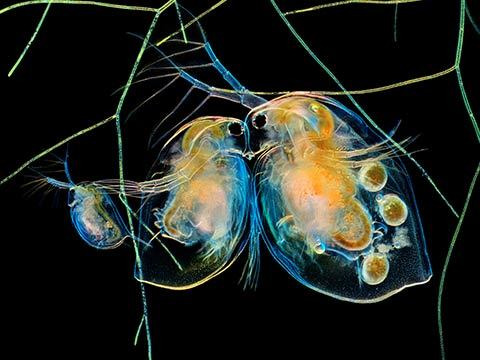 Colonial algae (Volvox) spheres in a drop of water (물방울 속 군집성 조류 Volvox 구체)