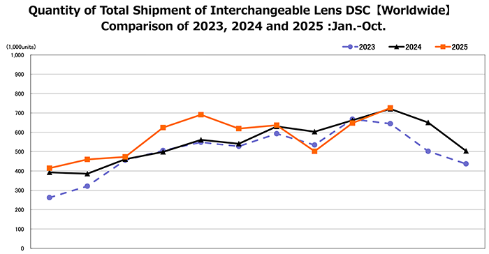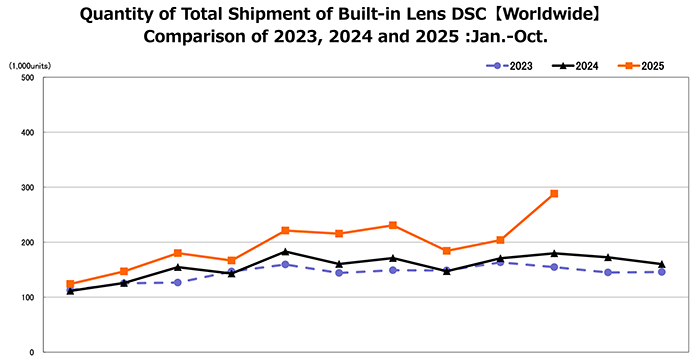 최근 발표된 CIPA의 글로벌 카메라 출하 데이터에 따르면, 2025년 하반기부터 렌즈 일체형 카메라의 출하량이 전년 대비 두 자릿수 이상의 가파른 상승세를 보이고 있다. 특히 일본과 중국 시장을 중심으로 한 수요 폭발이 눈에 띈다.