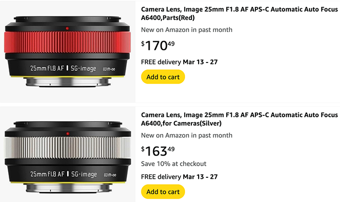 가성비 높은 렌즈 라인업으로 주목받고 있는 중국의 렌즈 제조사 SG-Image가 자사의 인기 모델인 '25mm F1.8 AF(APS-C)' 렌즈의 새로운 컬러 라인업인 레드와 실버 버전을 공식 출시하고 아마존을 통해 예약 판매를 시작했다.