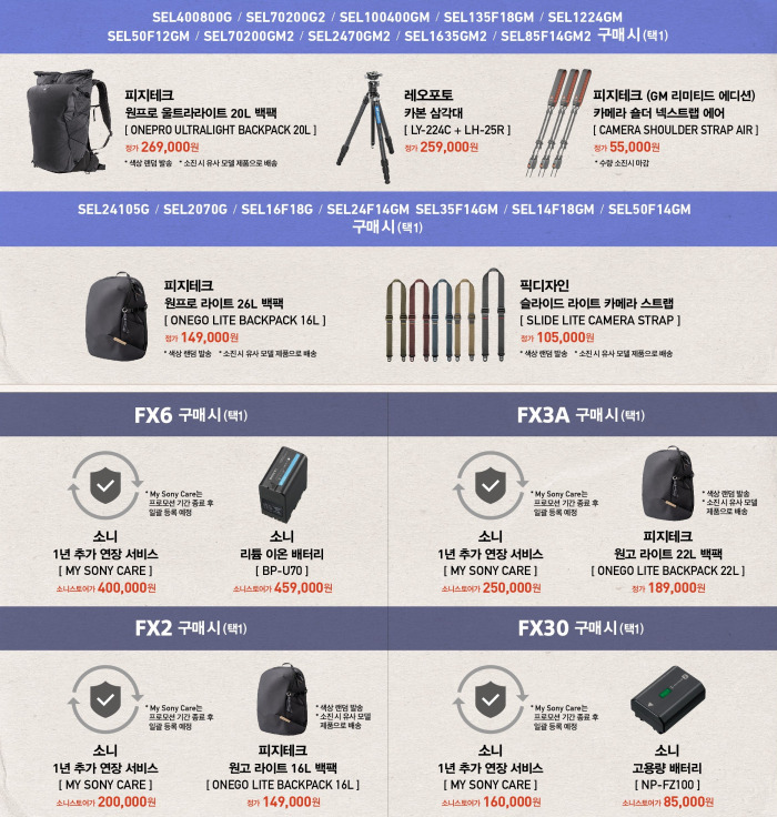영상 크리에이터를 위한 시네마 라인도 프로모션에 포함됐다. 풀프레임 시네마라인 카메라 FX6 및 FX3A부터, 사진과 영상을 모두 즐길 수 있는 FX2, APS-C 시네마라인 카메라 FX30이 대상이다.